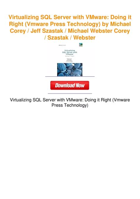 Read Online virtualizing sql server with vmware doing it right vmware press technology Kindle Editon By Click Button. virtualizing sql server with vmware doing it right vmware press technology it’s easy to recommend a new book category such as Novel, journal, comic, magazin, ect. You see it and you just know that the designer is also an author and understands the challenges involved with having a good book. You can easy klick for detailing book and you can read it online, even you can download it